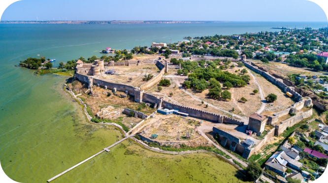 Город в Одесской области Украины, расположен на берегу реки Днестр. Известен своей историей, включая Белгородскую крепость, основанную в XIII веке.