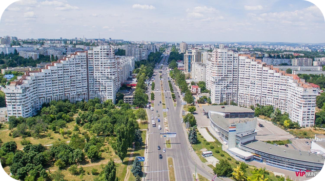 Cтолица Молдовы, расположена на реке Бык. Основные достопримечательности: парк Штефана чел Маре, Триумфальная арка, Национальный музей.